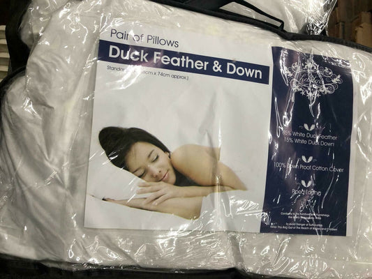 Pair of Luxury Extra Filled Duck Feather & Down Pillows Pillow Hotel Quality
