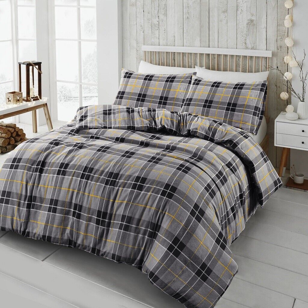 Flannelette Tartan Thermal 100% Brushed Cotton Quilt Duvet Cover Cosy Bed Set