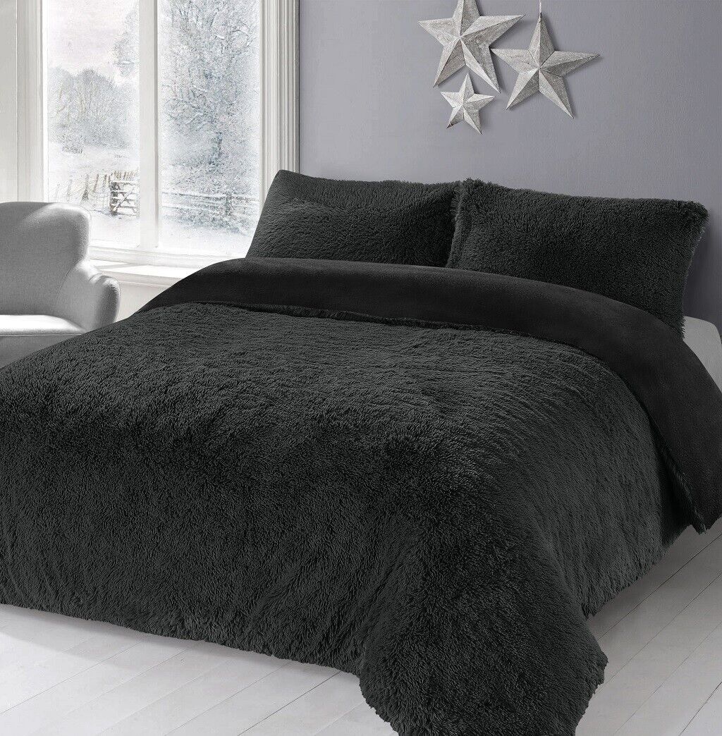 Luxury Cuddles Alaska Teddy Bear Fleece Duvet Cover Warm Long Fur Bedding Set