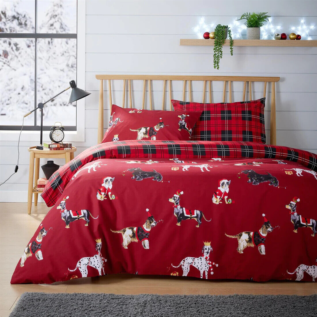 Xmas Duvet Quilt Cover Dogs Christmas Kids Bedding Set Single Double King